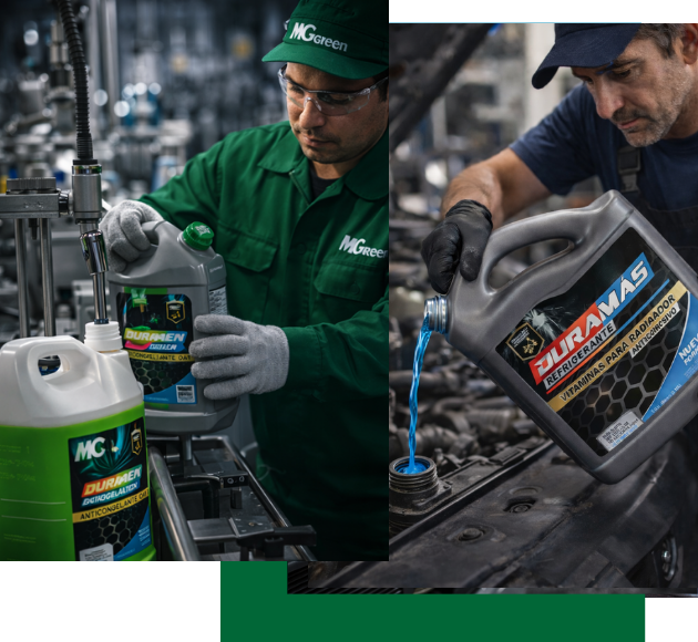 En MGREEN desarrollamos y fabricamos refrigerantes automotrices, urea certificada AUS32, desengrasantes industriales y soluciones especializadas diseñadas para proteger motores, optimizar procesos y garantizar alto rendimiento operativo. Nuestros productos cumplen estándares técnicos exigentes y están orientados a talleres, flotas de transporte y empresas industriales en Colombia.